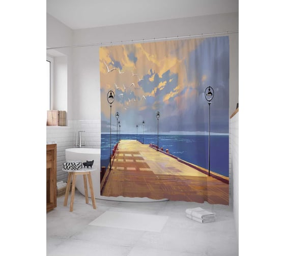 Штора (занавеска) для ванной JoyArty "Подышать морским воздухом" из сатена, 180х200 см с крючками, sc_23029