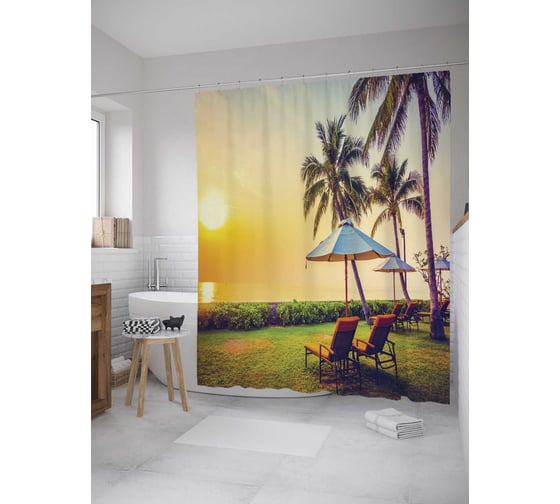 Штора (занавеска) для ванной JoyArty "Погрейся под солнцем" из сатена, 180х200 см с крючками, sc_9355