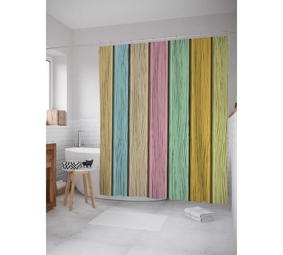 Штора (занавеска) для ванной JoyArty "Покрашенные доски" из сатена, 180х200 см с крючками, sc_38077