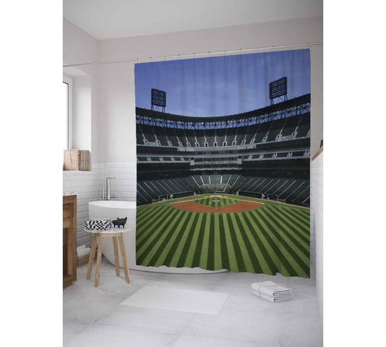Штора (занавеска) для ванной JoyArty "Поле для бейсбола" из сатена, 180х200 см с крючками, sc_8564