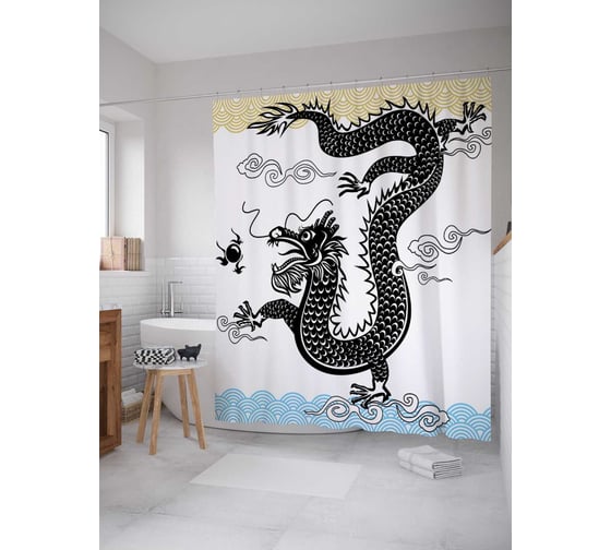 Штора (занавеска) для ванной JoyArty "Полет дракона" из сатена, 180х200 см с крючками, sc_36687