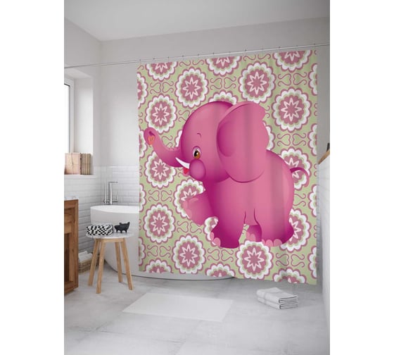 Штора (занавеска) для ванной JoyArty "Полевой слоник" из сатена, 180х200 см с крючками, sc_12621