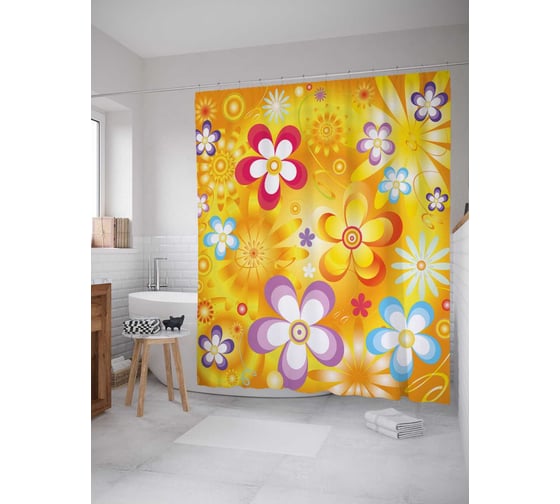 Штора (занавеска) для ванной JoyArty "Полевые цветы" из сатена, 180х200 см с крючками, sc_30959