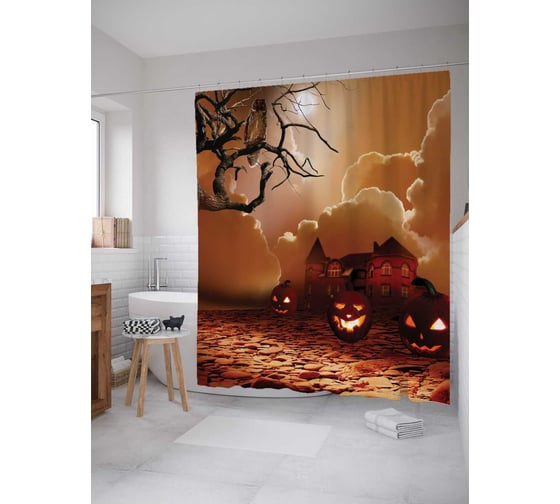 Штора (занавеска) для ванной JoyArty "Полнолуние на Хеллоуин" из сатена, 180х200 см с крючками, sc_4801