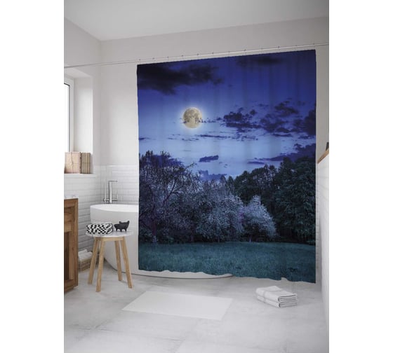Штора (занавеска) для ванной JoyArty "Полнолуние над деревьями" из сатена, 180х200 см с крючками, sc_27832
