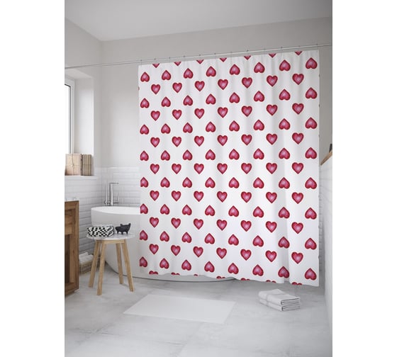 Штора (занавеска) для ванной JoyArty "Полные сердца" из сатена, 180х200 см с крючками, sc_60601