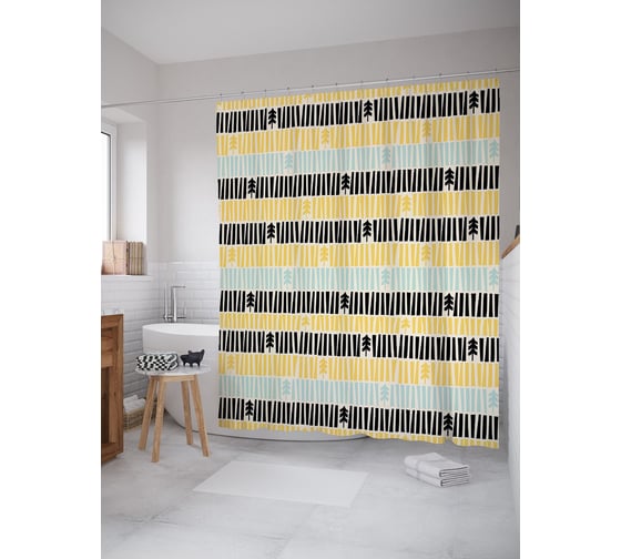 Штора (занавеска) для ванной JoyArty "Полосатая композиция" из сатена, 180х200 см с крючками, sc_53649