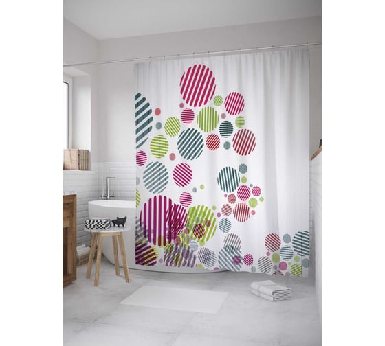 Сопутствующие товары для шторки-занавески JOYARTY Полосатые круги из сатена, 180х200 см с крючками