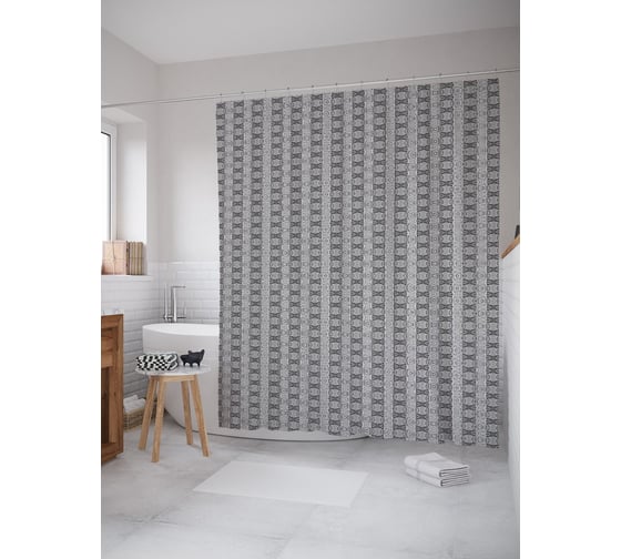 Сопутствующие товары для шторки-занавески JOYARTY Полосы зентангл из сатена, 180х200 см с крючками