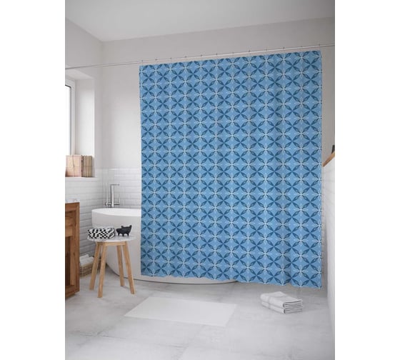 Штора (занавеска) для ванной JoyArty "Полотно крестиком" из сатена, 180х200 см с крючками, sc_31879