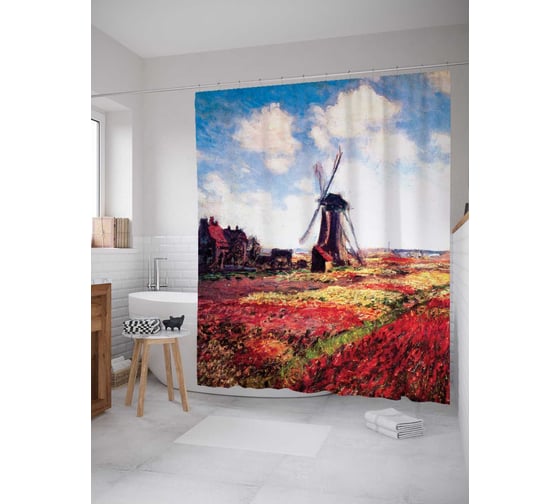 Штора (занавеска) для ванной JoyArty "Поля тюльпанов в Голландии" из сатена, 180х200 см с крючками, sc_6878