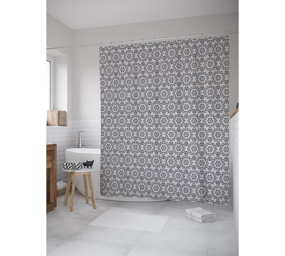 Штора (занавеска) для ванной JoyArty "Портьерный узор" из сатена, 180х200 см с крючками, sc_59041