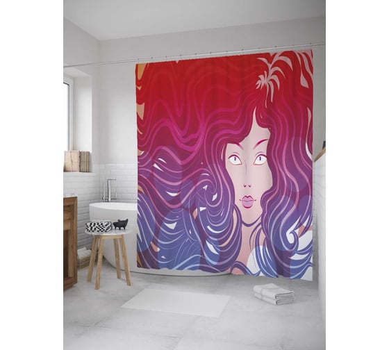 Штора (занавеска) для ванной JoyArty "Портрет русалочки" из сатена, 180х200 см с крючками, sc_31323