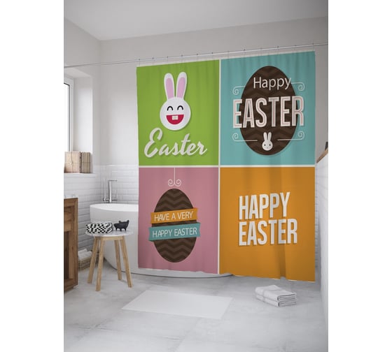 Штора (занавеска) для ванной JoyArty "Постеры на Пасху" из сатена, 180х200 см с крючками, sc_60236