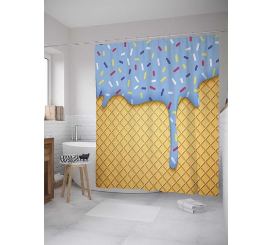 Штора (занавеска) для ванной JoyArty "Потеки на рожке" из сатена, 180х200 см с крючками, sc_36328