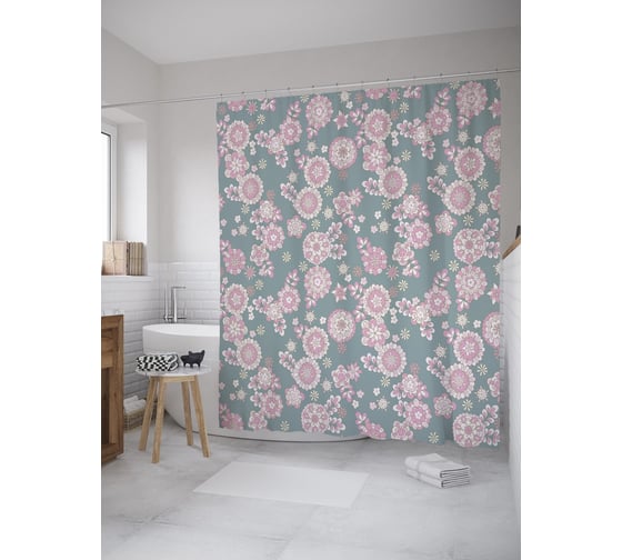 Штора (занавеска) для ванной JoyArty "Потертые цветы" из сатена, 180х200 см с крючками, sc_59253
