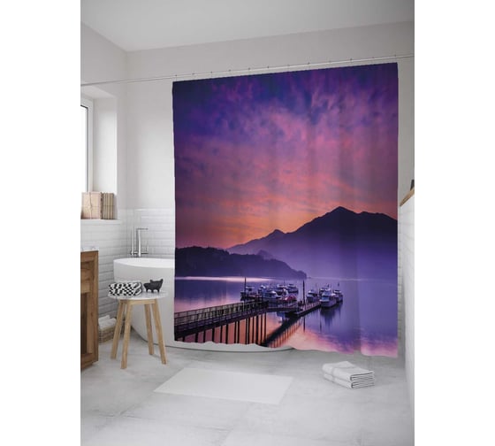 Штора (занавеска) для ванной JoyArty "Потрясающий закат" из сатена, 180х200 см с крючками, sc_31219
