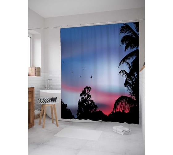 Штора (занавеска) для ванной JoyArty "Поздний закат" из сатена, 180х200 см с крючками, sc_27979