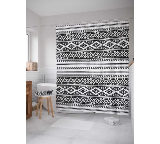 Штора (занавеска) для ванной JoyArty "Правильный орнамент" из сатена, 180х200 см с крючками, sc_29108