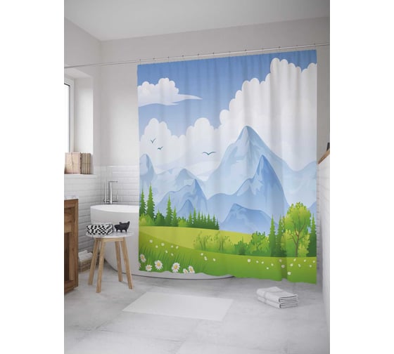 Сопутствующие товары для шторки-занавески JOYARTY Предгорье акварель из сатена, 180х200 см с крючками