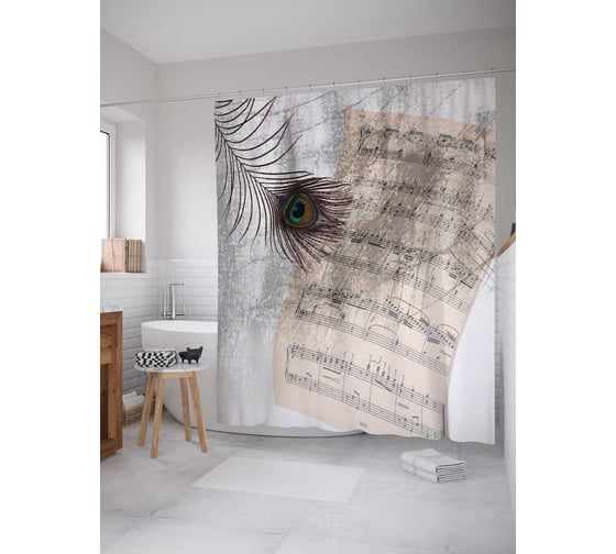 Штора (занавеска) для ванной JoyArty "Прекрасное перо" из сатена, 180х200 см с крючками, sc_17187