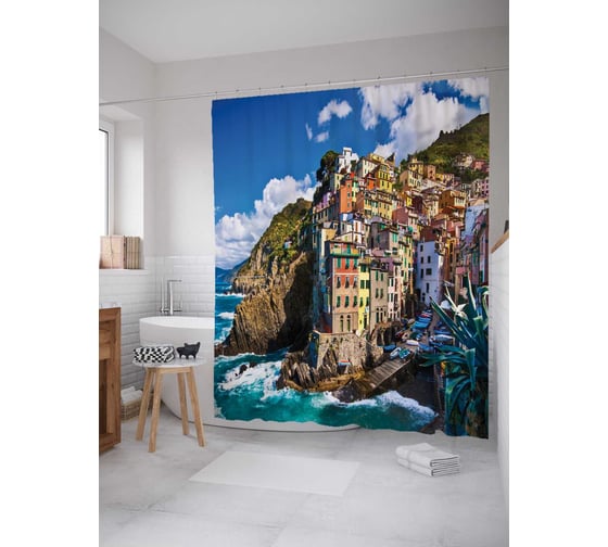 Сопутствующие товары для шторки-занавески JOYARTY Прибрежный город из сатена, 180х200 см с крючками