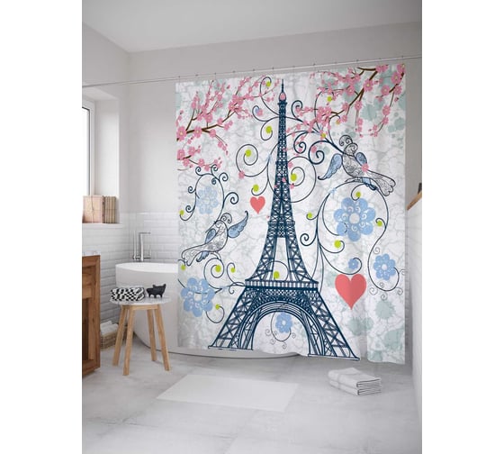 Сопутствующие товары для шторки-занавески JOYARTY Природа парижа из сатена, 180х200 см с крючками