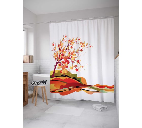 Штора (занавеска) для ванной JoyArty "Природная печаль" из сатена, 180х200 см с крючками, sc_12436