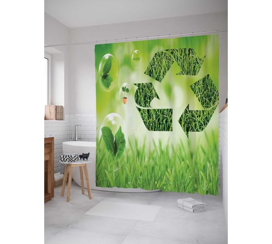 Штора (занавеска) для ванной JoyArty "Природный круговорот" из сатена, 180х200 см с крючками, sc_7318
