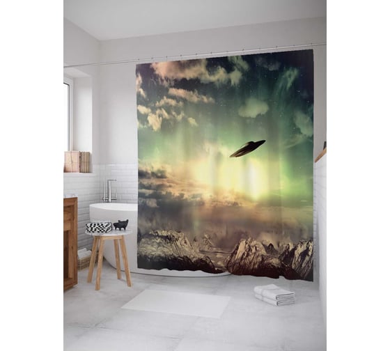 Штора (занавеска) для ванной JoyArty "Пришельцы маневрируют" из сатена, 180х200 см с крючками, sc_6853