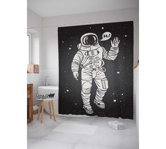Штора (занавеска) для ванной JoyArty "Привет из космоса" из сатена, 180х200 см с крючками, sc_19945