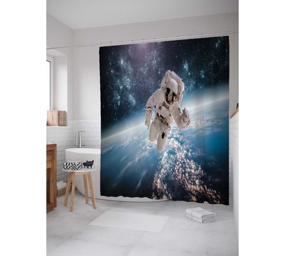 Штора (занавеска) для ванной JoyArty "Привет из космоса" из сатена, 180х200 см с крючками, sc_7131