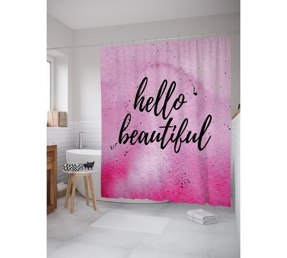 Штора (занавеска) для ванной JoyArty "Привет, красивая" из сатена, 180х200 см с крючками, sc_52956