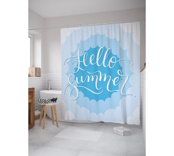 Штора (занавеска) для ванной JoyArty "Приветик, лето" из сатена, 180х200 см с крючками, sc_53744