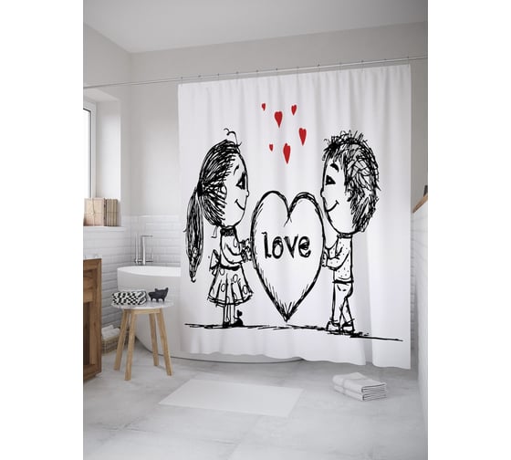 Штора (занавеска) для ванной JoyArty "Признание в любви" из сатена, 180х200 см с крючками, sc_61095