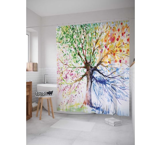 Штора (занавеска) для ванной JoyArty "Проходит время" из сатена, 180х200 см с крючками, sc_3389