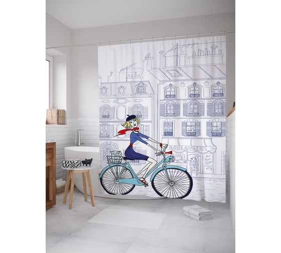 Штора (занавеска) для ванной JoyArty "Прокатись по Парижу" из сатена, 180х200 см с крючками, sc_29365