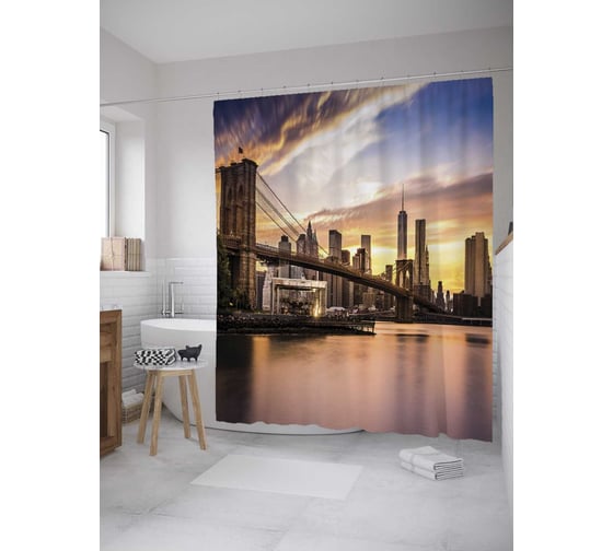 Штора (занавеска) для ванной JoyArty "Проплывая под мостом" из сатена, 180х200 см с крючками, sc_8103