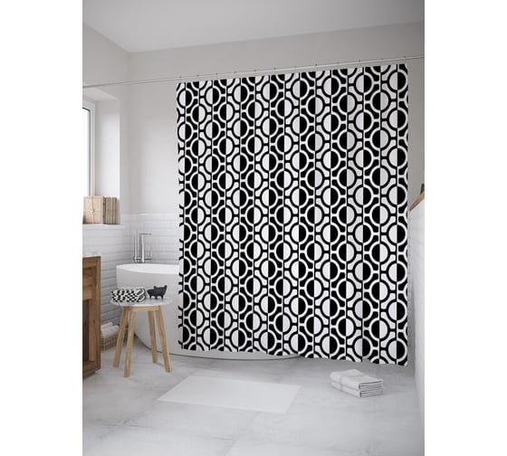 Штора (занавеска) для ванной JoyArty "Противоположность кругов" из сатена, 180х200 см с крючками, sc_52513
