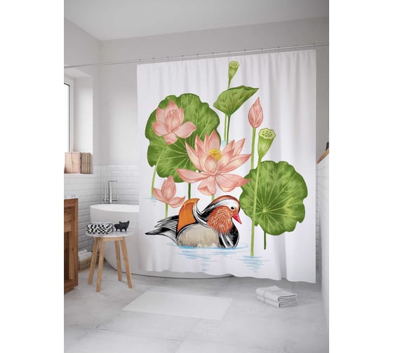 Штора (занавеска) для ванной JoyArty "Птичьи прятки" из сатена, 180х200 см с крючками, sc_22351