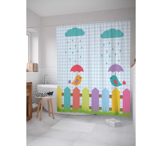 Сопутствующие товары для шторки-занавески JOYARTY Птицы с зонтами из сатена, 180х200 см с крючками