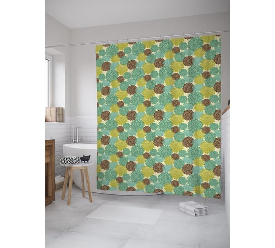 Штора (занавеска) для ванной JoyArty "Пушистые шары" из сатена, 180х200 см с крючками, sc_59534