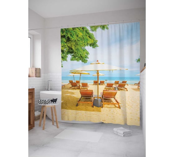 Штора (занавеска) для ванной JoyArty "Пустующий пляж" из сатена, 180х200 см с крючками, sc_9359