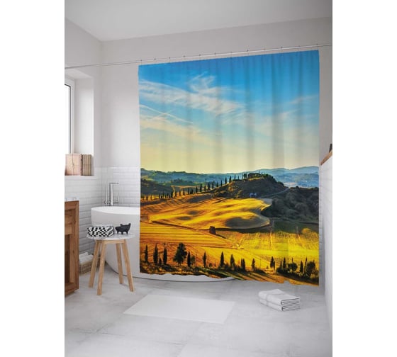 Штора (занавеска) для ванной JoyArty "Путь воспоминаний" из сатена, 180х200 см с крючками, sc_14596