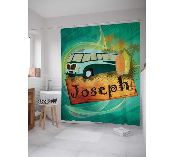 Штора (занавеска) для ванной JoyArty "Путешествие Джозефа" из сатена, 180х200 см с крючками, sc_3970