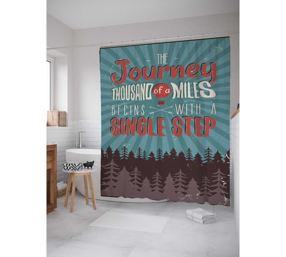Штора (занавеска) для ванной JoyArty "Путешествие на тысячу миль" из сатена, 180х200 см с крючками, sc_22036