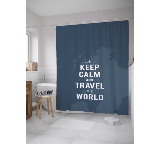 Штора (занавеска) для ванной JoyArty "Путешествуй" из сатена, 180х200 см sc_378482