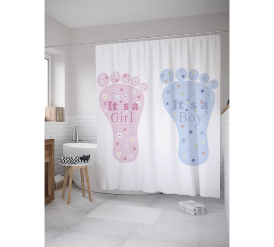 Штора (занавеска) для ванной JoyArty "Пяточки новорожденных" из сатена, 180х200 см с крючками, sc_35132