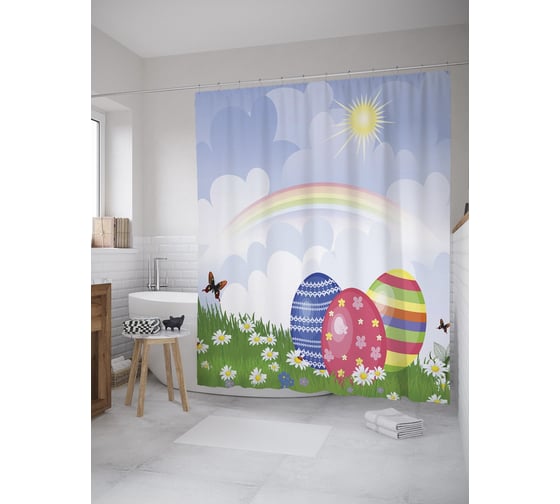 Сопутствующие товары для шторки-занавески JOYARTY Радуга над лугом из сатена, 180х200 см с крючками