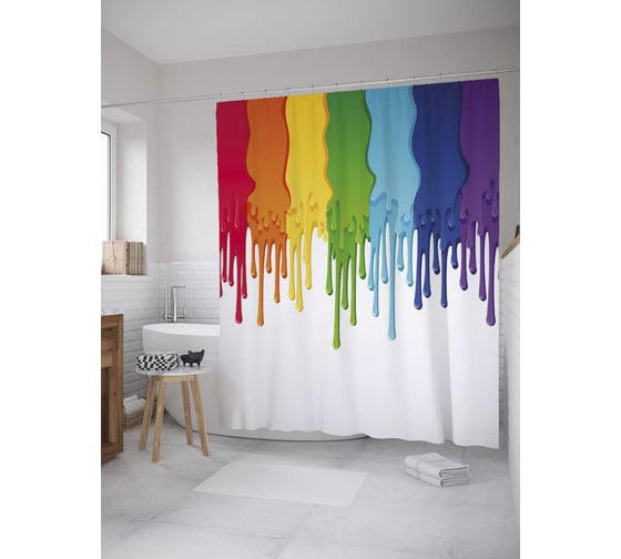 Штора (занавеска) для ванной JoyArty "Радуга потекла" из сатена, 180х200 см с крючками, sc_27873